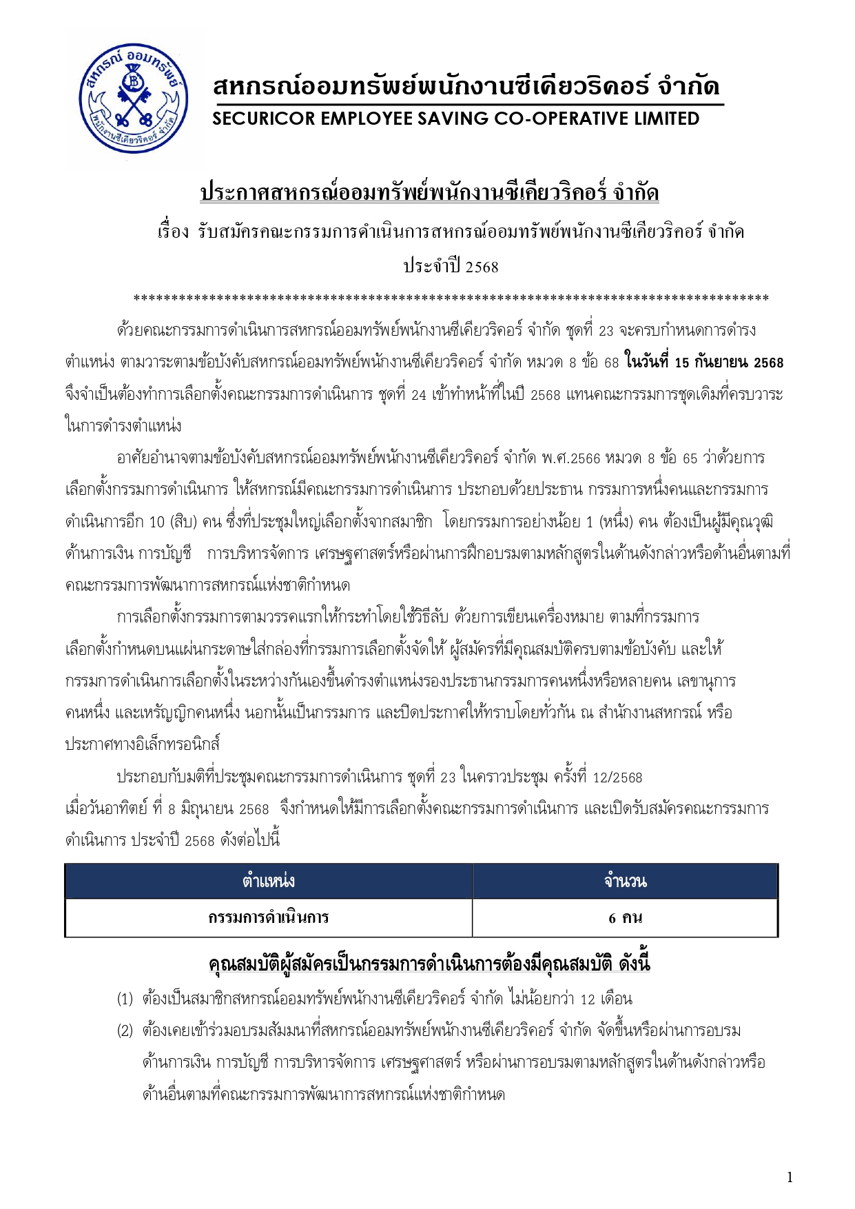 สหกรณ์ออมทรัพย์พนักงานซีเคียวริคอร์ จำกัด